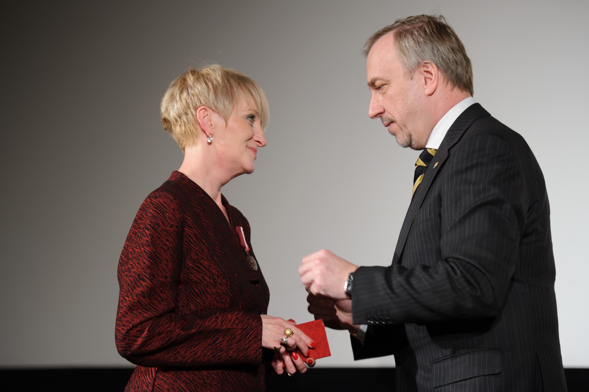 W ramach obchodów Jubileuszu 100 - lecia istnienia kina Marzenie Minister Kultury i Dziedzictwa Narodowego Bogdan Zdrojewski wręczył dziś w Tarnowie brązowe medale "Zasłużony Kulturze – Gloria Artis" Annie Grygiel, dyrektor TNF i Jerzemu Armacie, dyrektorowi artystycznemu TNF.
